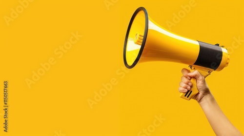 megaphone, announcement, loudspeaker, communication, marketing, promotion, advertising, public, address, system, hand, holding, yellow, colours, device, speaker, sound, voice, message, broadcast, news, information, attention, call, action, campaign, strategy, achieving, audience, impact, power, volume, amplifier, bullhorn, media, event, protest, rally, speech