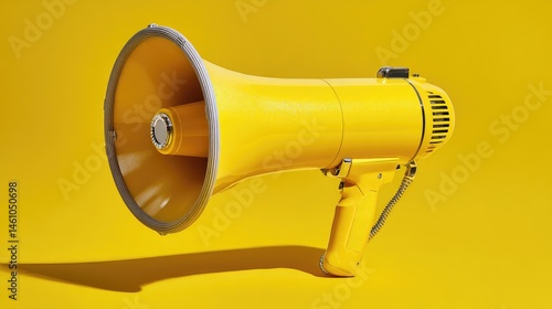 Yellow megaphone on bold yellow, sharp shadows, clean composition. Power and clarity in simplicity.