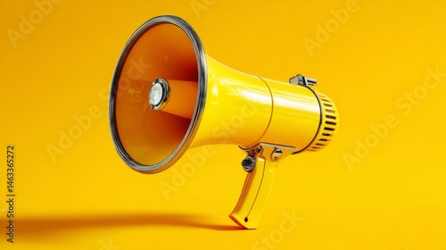 Yellow megaphone on bold yellow, sharp shadows, clean composition. Power and clarity in simplicity.