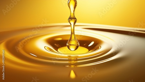 Yellow olive or sunflower oil liquid drop closeup background. Organic cosmetic splashing wave on golden surface texture, orange juice flowing, motor engine fluid smooth ripple