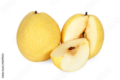 yellow, pear, fresh, isolated, vegetarian, produce, natural, oriental, delicious, tropical, dessert, white, sweet, pair, chinese, diet, snack, organic, asia, eat, object, stem, tasty, round, healthy, vitamin, fruit, background, nourishment, health, nature, single, exotic, food, juicy, china