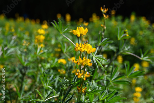 Yellow perennial lupine in the garden.