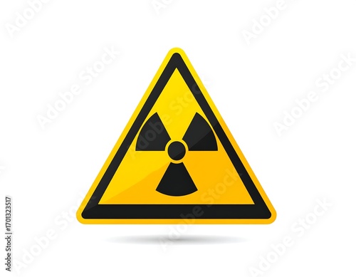 Yellow radiation warning sign, alert, white background, safety