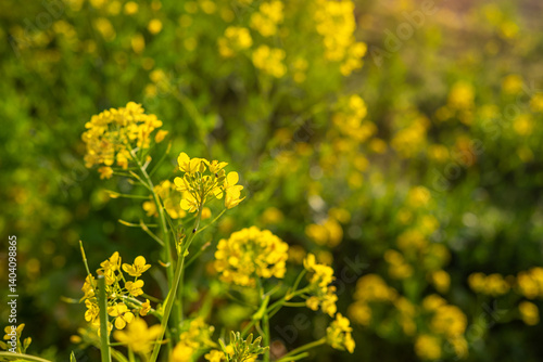 yellow rapeseed flowers natural light canola flowers in field agriculture closeup