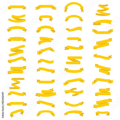 Yellow Ribbon banner set isolated on a white background. Yellow color. Simple modern cute design. eps 10