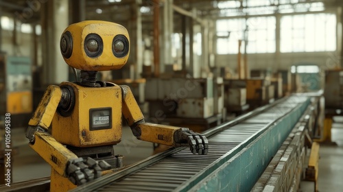 Yellow Robot on Conveyor Belt