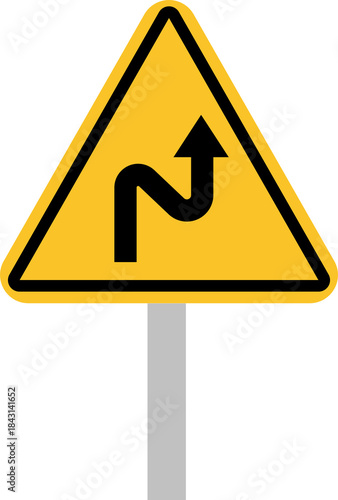 traffic sign, warning sign, roadsign, winding road, road safety, traffic control, traffic regulations, transportation, street sign, caution, hazard, driving, vehicle, motorist, pedestrian, infrastructure, public safety, roadway, traffic regulations, zigzag, navigation, symbol, icon, illustration, graphic, travel, route, bend, turn, signage