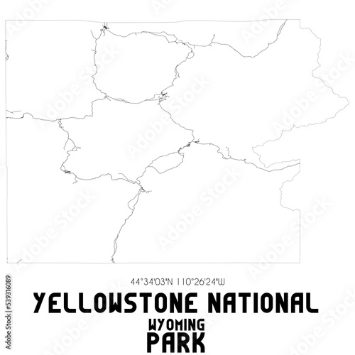 Yellowstone National Park Wyoming. US street map with black and white lines.