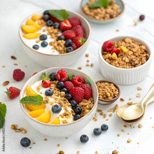Yogurt with fruits and berries is a refreshing, healthy snack or dessert,