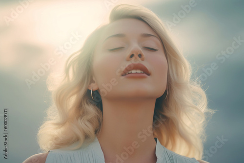 young adult woman or teenager enjoys nature in the sun , early spring or summer, sunbeams. Generative AI