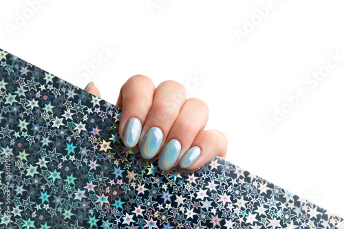 nail, manicure, fashion, hand, holographic, woman, skincare, varnish, trendy, modern, fashionable, elegant, wellness, beauty parlour, blue, cosmetic, gel, stylish, style, care, beauty, art, creative, fingernail, soft, skin, finger, female, design, polish, minimal, neon, pastel, hologram, glistering, shine, sparkle
