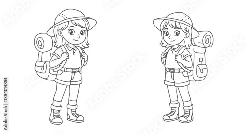 Young Adventurers: Two young girls prepared for a hike adventure, with backpacks and outdoor gear. Embracing a spirit of wanderlust.