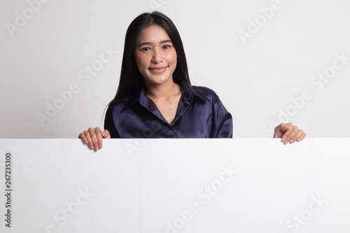 portrait, asian, banner, beautiful, billboard, blank, blank sign, empty, female, girl, lady, peeking, person, signs, poster, signs, space, studio, whiteboard, woman, young, white