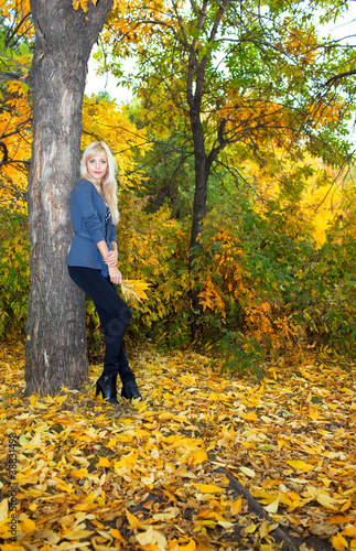 Young beautiful woman in autumn park