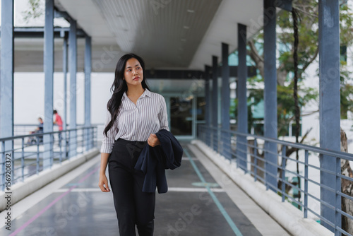 businesswoman, walking, office, business, corridor, hallway, building, professional, woman, young, modern, architecture, corporate, career, work, confident, executive, entrepreneur, female, indoor, interior, workplace, going, job, employment, success, determined, elegant, style, city, urban, lifestyle, 1, person, daytime, real, people, asia, asian, manager, leader, thoughtful, looking, distance, perspective, future, ambition