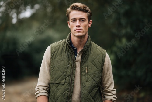 male, young, caucasian, green, vest, outdoors, nature, fashion, casual attire, photogenic, stylish, tree, path, confident, serious, look, expression, hair, attractive, jacket, wool, layered, fall, forest, park, portrait, sunlight, daylight, autumn, masculine, vibe, wilderness, pathway, calm, rugged, relaxed, modern style, trendy, casual clothes, timberland, fashionable