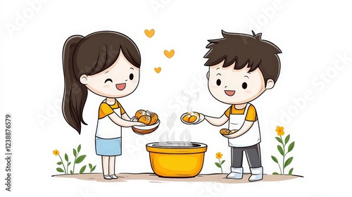 interaction, sharing, warmth, affection, caring, togetherness, bonding, harmony, playful, human relationships, teamwork, youth, atmosphere, community, enjoyment, friendship, hobby, preparation, creativity, joy, relaxation, smile, ingredient, smiling, simple, happiness, love, fun, kitchen, couple, illustration, home, cartoon, art, cute, healthy, lifestyle, cheerful, design, celebration, colourful, casual attire, nature, food, fresh, table, cooking