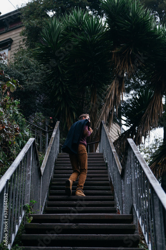 portrait, fashion, bay, california, caucasian, city, climb, coat, commute, cool, day, dock, dress, fall, photogenic, male, man, morning, outdoors, overcast, pier, railing, frisco, stair, style, stylish, urban, walk, warm, weather, young, white, person, people, adult, adult, 20s, young adult, young adult, young person, grown-up