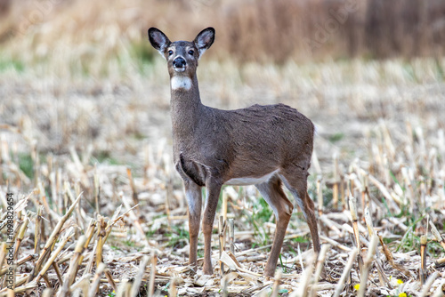 Young female white-tailed deer (Odocoileus virginianus) in a Wisconsin cornfield