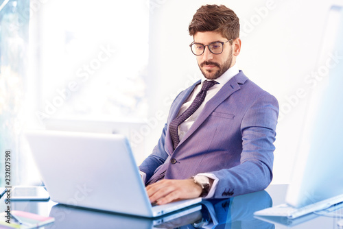 businessman, business, suit, attaching, man, man, male, young, portrait, working, thinking, office, computer, laptop, notebook, professional occupation, looking, sale, financial, investment, adviser, desk, sitting, photogenic, assistant, young adult, one man only, confident, executive, successful, people, person, 30s, eyewear, office worker
