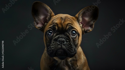 french bulldog, puppy, dog, pet, animal, canino, breed, purebred, portrait, closeup, dark background, studio shot, brown, cute, adorable, animal portrait, black background, pedigree, animal head, veterinary, loyal, faithful, watchful, alert