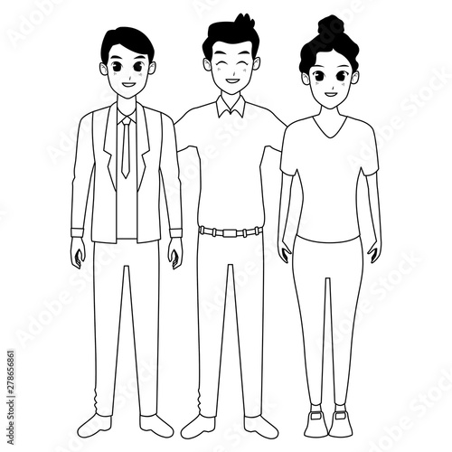 Young friends smiling and greeting in black and white
