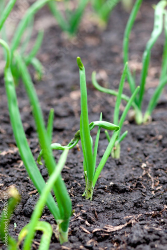 Young green onions in the garden