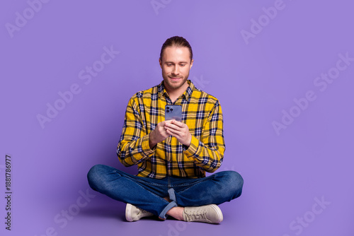 young, photogenic, guy, male, man, blond, hair, bristle, beard, student, casual attire, style, shirt, chequered, plaid, fashion, model, stylish, trendy, attractive, happy, funny, funky, fun, joy, smile, smiling, leisure, lifestyle, advertising, shopping, promoting, purple, violet, background, image, photo, portrait, camera, studio, bright, colours, vogue, marketing, sale, discount, business, businessman