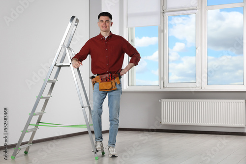 adult, background, belt, business, caucasian, construction, contractor, copy, craftsman, equipment, fix, floor, full, photogenic, handyman, happy, home, house, indoor, industry, job, leaning, length, maintenance, maker, male, man, person, portrait, profession, professional, redecoration, renewal, renovation, repair, repairman, room, service, smiling, space, stepladder, text, tool, wall, white, window, work, men at work