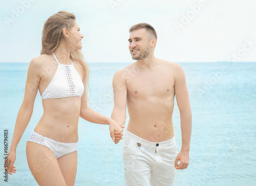 adult, affection, attractive, background, beach, beautiful, bliss, boyfriend, casual attire, caucasian, couple, female, fun, girlfriend, photogenic, happy, holiday, honeymoon, husband, love, male, man, married, outdoors, pair, people, pretty, human relationships, relax, resort, rest, romance, romantic, sea, seacoast, season, sky, summer, swimwear, together, 2, walking, wife, woman, young