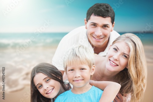 Young happy family at beach have fun,