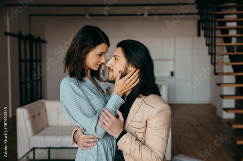 love, feeling, passion, couple, emotion, tenderness, devotion, kiss, touch, joy, marriage, happiness, smile, laughter, family, intimacy, human relationships, husband, wife, home, apartment, comfort, sofa, arab, turk, spaniard, italian, stair, design, interior, elegance, empathy, tactility, cookery, white, coiffure, brunette, romance, revelation, trust, loyalty, understanding, care, sincerity, affection, beauty, youth, man, woman