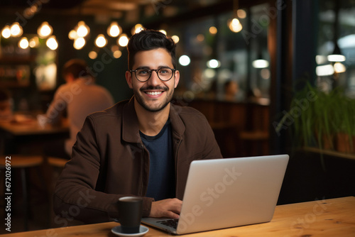 young, indian, asian, man, male, businessman, entrepreneur, employee, student, learning, sitting, using, laptop, smiling, photogenic, cyberspace, wireless, technology, digital, india, working, freelancer, modern, connection, success, table, happy, guy, adult, person, manager, background, lifestyle, expression, attractive, stylish, style, cheerful, comfortable, computer, portrait, online, business, confident, ai, artificial intelligence, futuristic