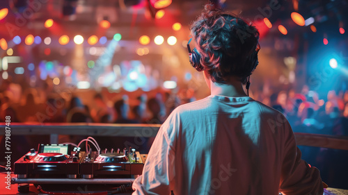 young, dj, mixing console, nightclub, background, boy, man, musician, dancing, disco, party, neon, guy, fun, person, people, disc, earphones, purple, night, club, music, mixer, console, entertainment, nightlife, equipment, performance, play, sound, band, stage, concert, rock, dance, light, show, bar, laser, disc, clubbing, playing, audio, vinyl, turntable, mixing, record, deck, hand