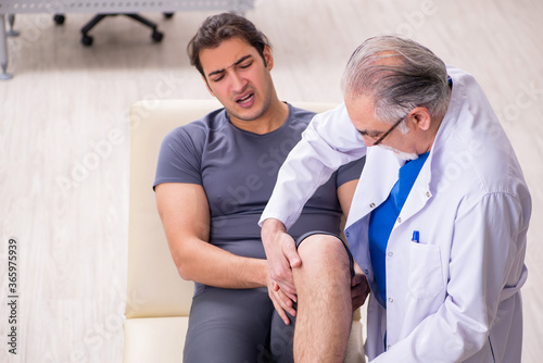 Young male patient visiting old doctor traumatologist