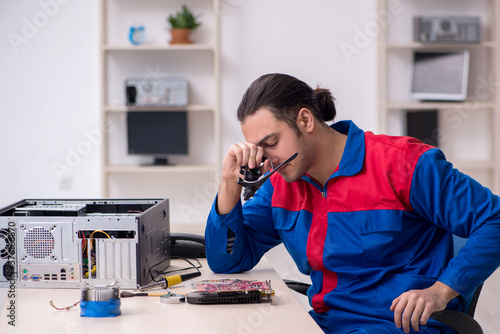 Young male repairman repairing computer