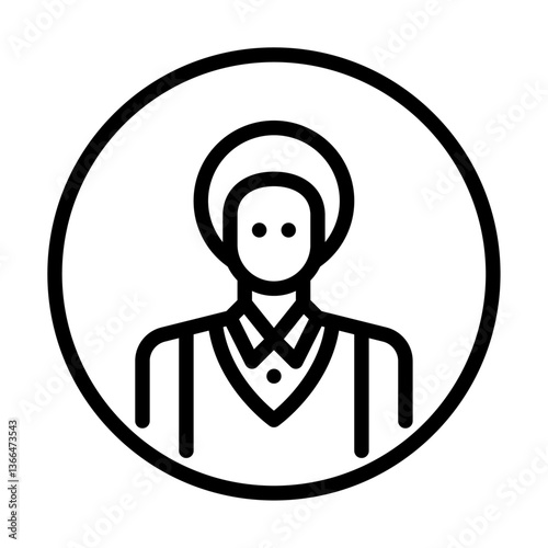 vector, outline, line, black, icon, illustration, avatar, circle, character, person, human, young, man, male, boy, youth, curly, teenage, modern, casual attire, simple, stylish, trendy, portrait, face, lifestyle, personality, confident, fashion, energetic, urban, friendly, social