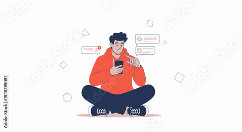 young, man, smartphone, chatting, social, media, communication, digital, online, messaging, app, mobile, technology, connection, conversation, youth, casual attire, illustration, modern, lifestyle, cyberspace, wireless, device, hand-held, interaction, network, icon, bubble, message