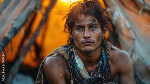 Young Man in a Teepee Fictional Character Created By Generative AI