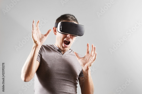 Young man in virtual reality, vr glasses.
