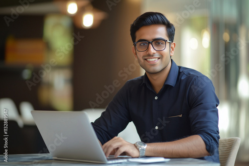 man, person, male, young, business, computer, businessman, adult, technology, office, laptop, sitting, modern, happy, smile, professional, working, entrepreneur, smart, photogenic, job, using, corporate, looking, 1, portrait, table, indian, confident, guy, white, ethnicity, successful, attractive, cheerful, freelancer, occupation, executive, asian, men at work, typing, cyberspace, casual attire, happiness, suit, notebook, india, connection, communication