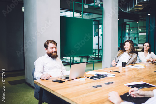 businessman, presentation, business, listening, colleague, meeting, group, gathering, creative, positive, leader, workplace, workspace, corporate, confident, development, sitting, teamwork, staff, communication, table, startup, speaker, young, desk, project, entrepreneur, talking, discussion, idea, design, professional, laptop, office, partner, strategy, executive, company, people, collaboration, conversation, occupation, interact, modern, indoor