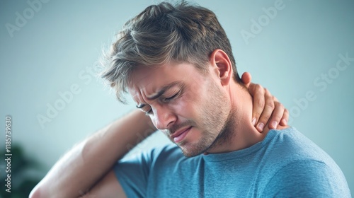 Young man suffering from neck pain. Headache pain.
