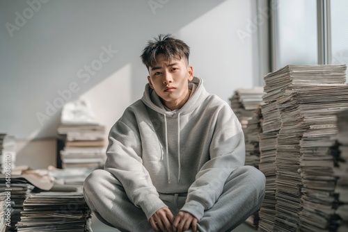 stress, overwhelmed, paperwork, man, asian, sleepy, document, stack, young, hoodie, paper, sitting, deadline, office, work, pressure, burnout, frustrated, burden, task, job, lifestyle, student, studying, learning, cognition, information, report, assignment, academic, project, research, analysis, exam, education, preparing, effort, time, management, sharpened, productivity, completion, achievement