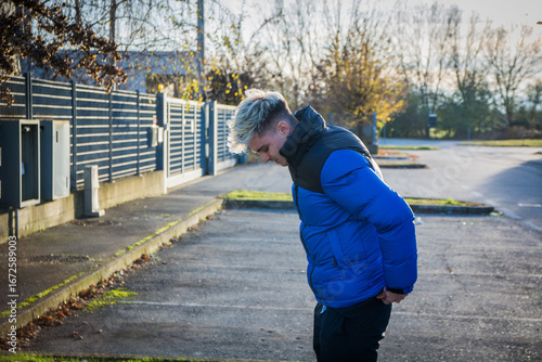 young men, man, photogenic, attractive, blond, blue eye, young, hair, blue, eye, jacket, urban, setting, sunny, day, thoughtful, tree, building, fashion, casual attire, wear, alone, street, leisure, male, model, nature, style, exploring, city, life, youth, candid, relaxed, looking, morning, bright, calmness, lifestyle, modern, fitness, activity, emotion, personal, happiness, environment, natural