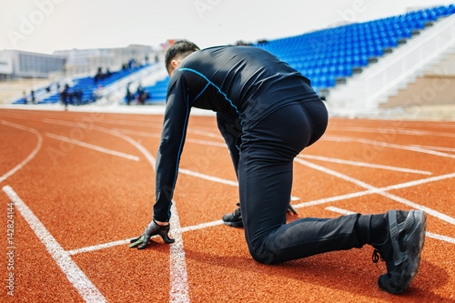 sport, runner, athlete, exercise, training, people, outside, speed, concentration, fitness, 1, stadium, wait, forward, man, race, track, line, summer, sprinter, youth, event, young, guy, muscular, red, unrecognizable, male, activewear, action, adult, aspiration, athletic, blue, body, competition, crouching, hand, photogenic, jogging, preparation, race track, sky, sportsman, starting, run, running, start, concept