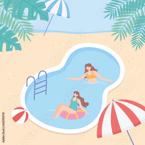 pool, top, view, swimming, people, float, summer, woman, up high, background, illustration, rubber, vacation, vector, water, female, girl, inflatable, leisure, lifestyle, ball, bikini, ocean, raft, human relationships, relax, relaxation, resort, ring, summer, sun tanning, sunny, together, togetherness, tour tourism, travel, young