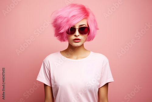 Young pink haired woman on a clean background