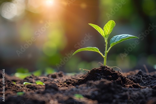 Young Plant Breaking Through Soil Reaching for Sunlight Symbol of New Life and Growth