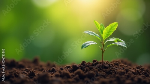 young plant breaking through the soil, symbolizing personal growth. The fresh green leaves and rich earth